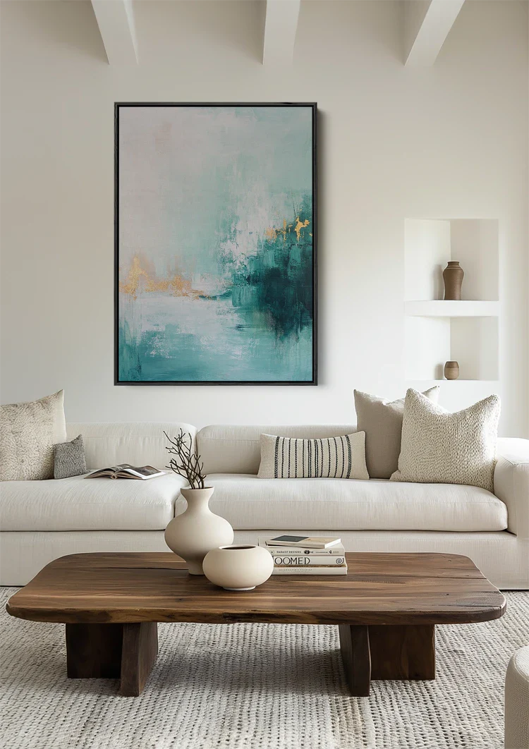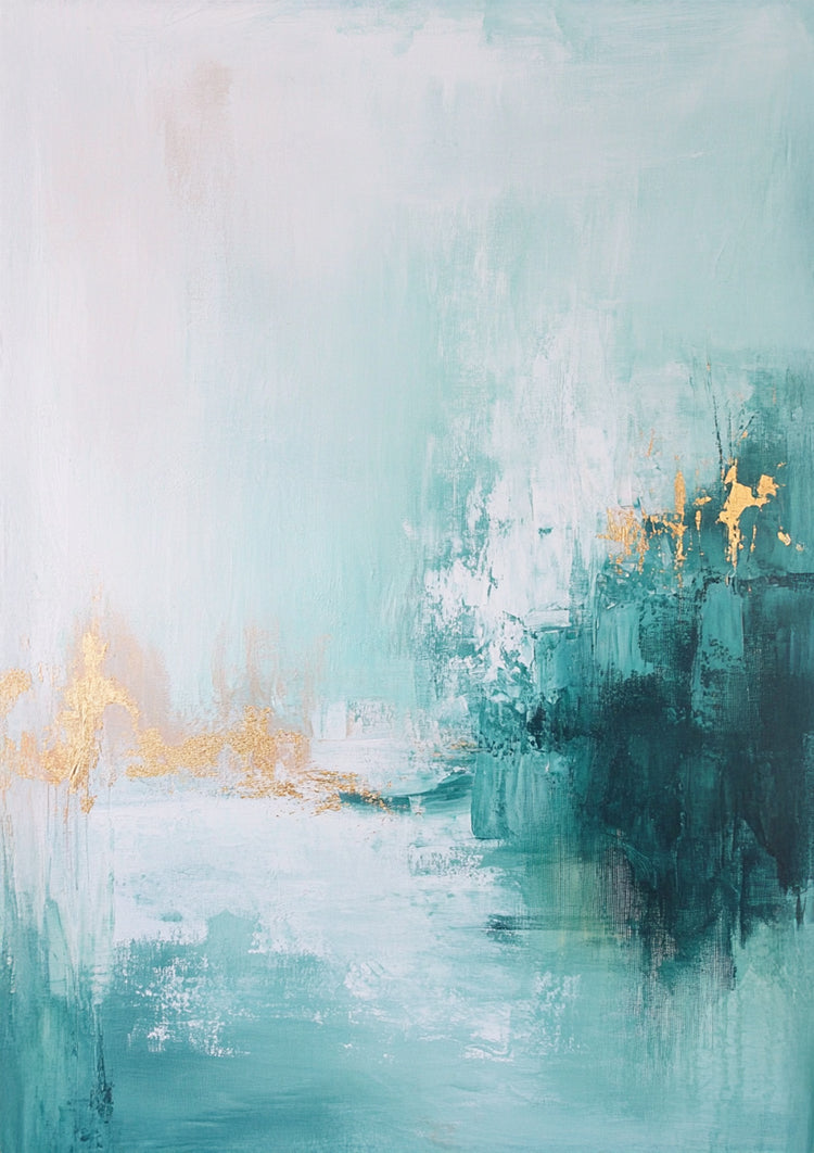 Warum Sie Abstrakt Türkis Weiß Goldene Akzente Serenes Minimalistisches Gemälde auf Leinwand wählen