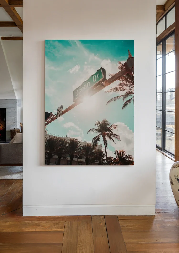 Warum Sie Ocean Drive Straßenschild Palmen Sonnige Himmelsmalerei auf Leinwand wählen