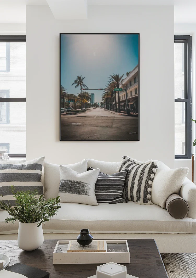 Warum Sie Stiller Boulevard Palmen Ampeln Sonnige Straße Gemälde auf Leinwand wählen