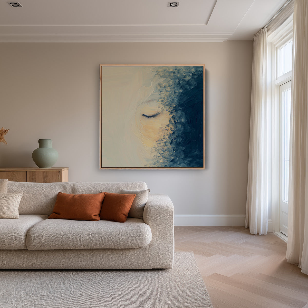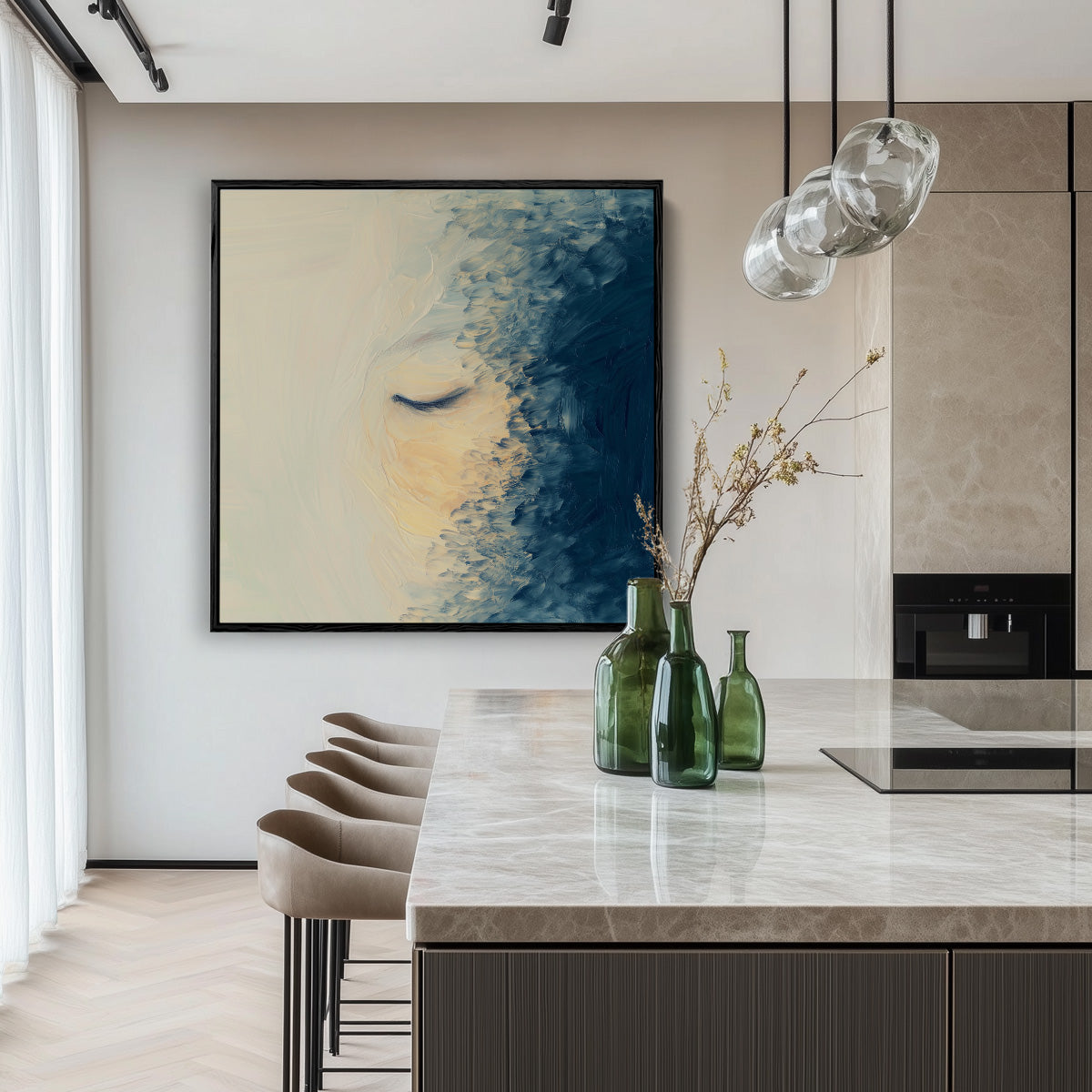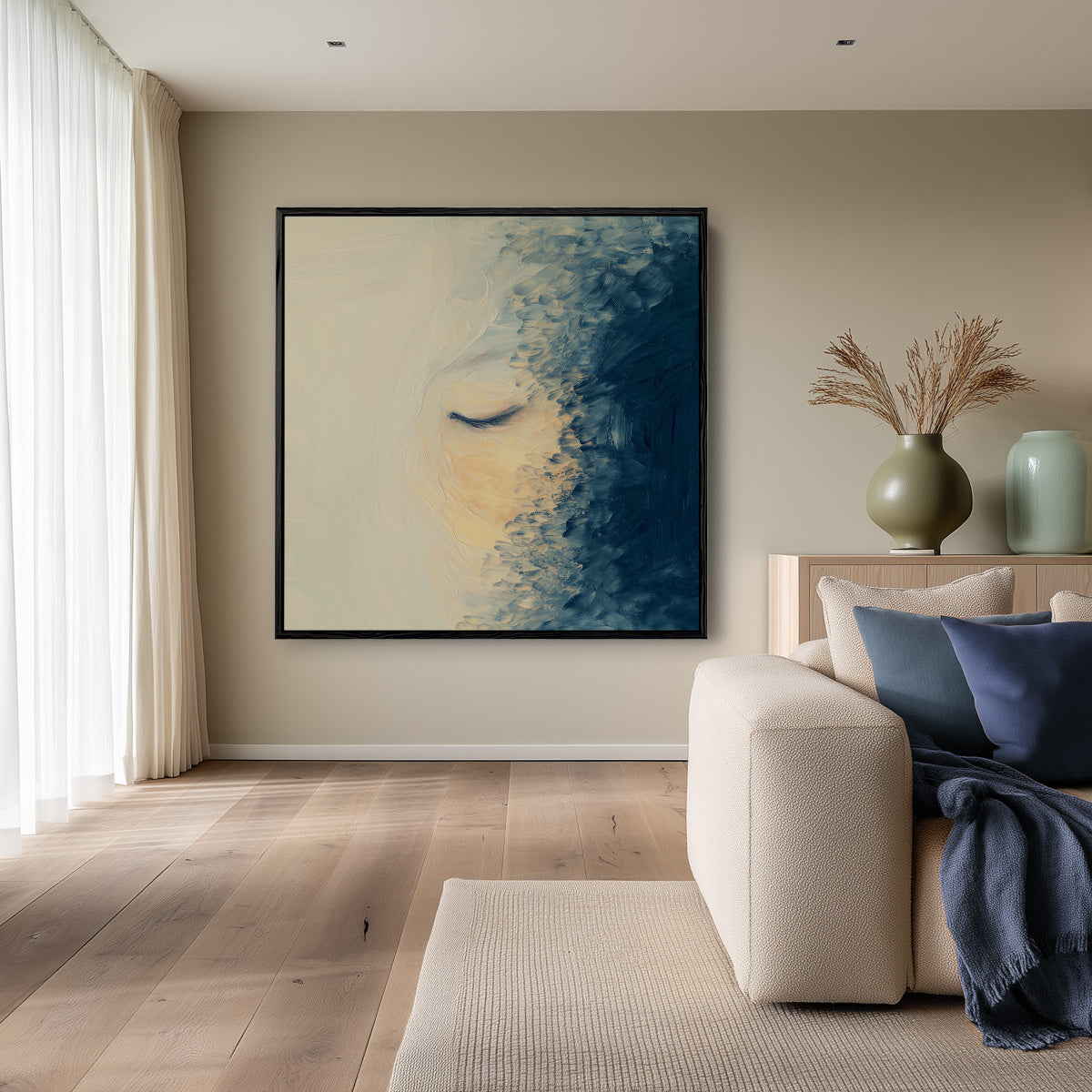 Why choose Female Face Closed Eyes Dark Blue Expressionist Painting on canvas