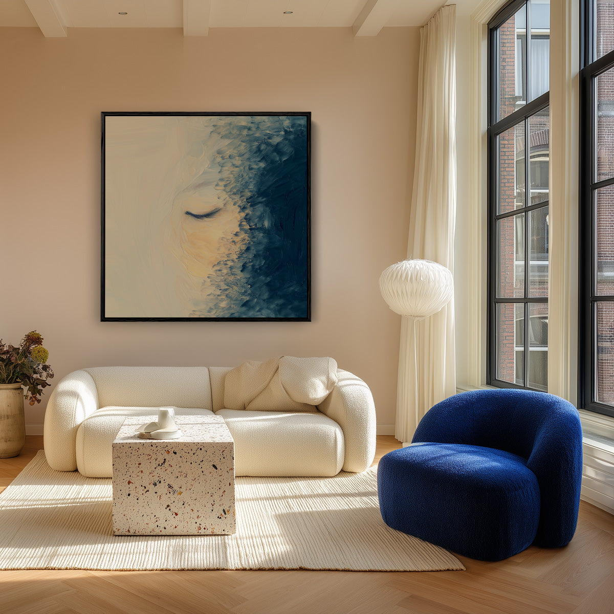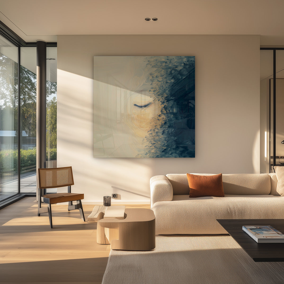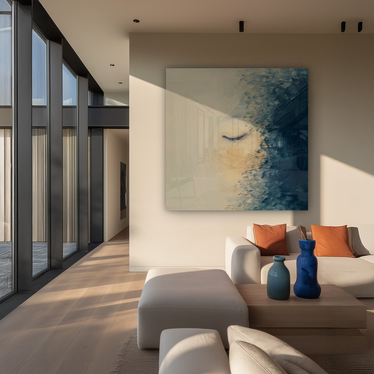 Why choose Female Face Closed Eyes Dark Blue Expressionist Painting on canvas