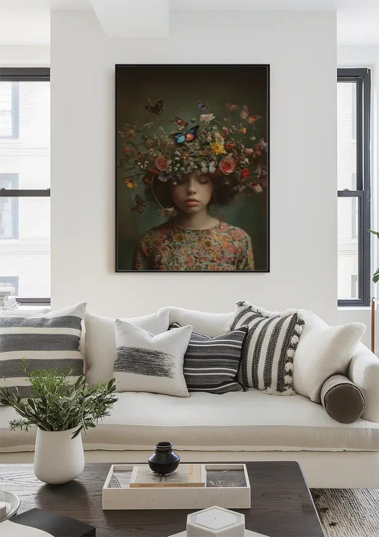 Why choose Girl with Flower Crown and Butterflies Dreamy Nature Portrait Painting on canvas